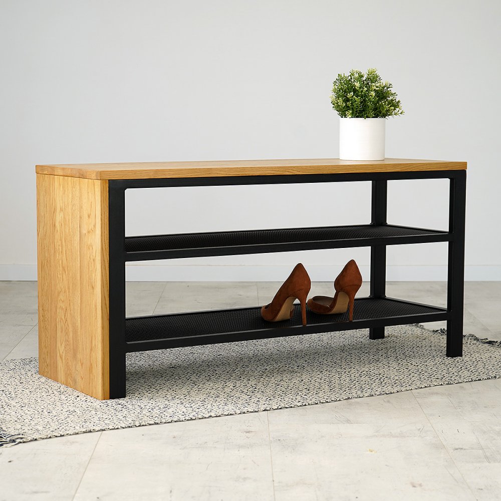 Банкетка Solid - банкетка лофт для передпокою з натуральним деревом і металевим каркасом. Підходить для зручного перевзування, зберігання взуття та організації простору.